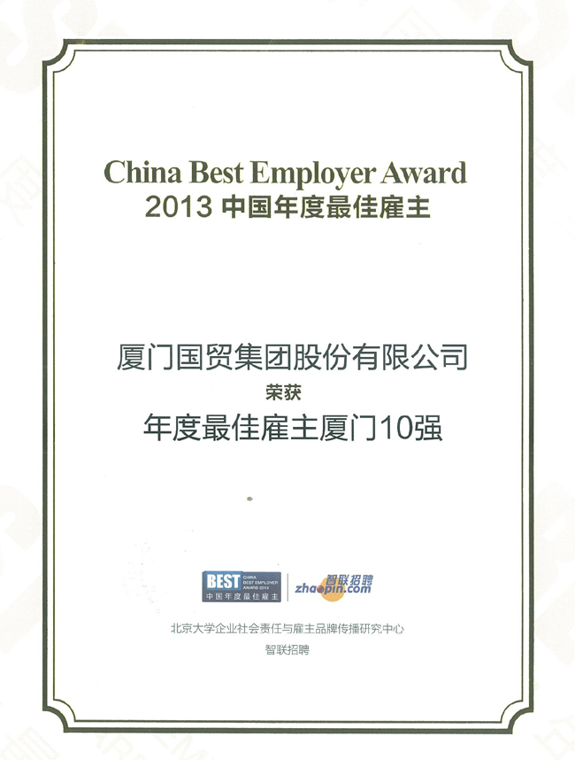 廈門國貿(mào)榮獲年度最佳雇主廈門10強(qiáng)