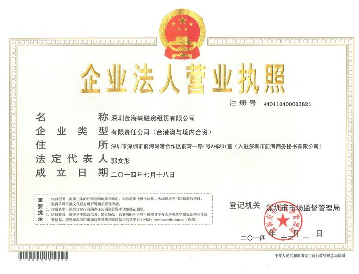 在此背景下,廈門國貿(mào)集團在金融領域又有新的布局,中小微綜合金融服務板塊開辟新的業(yè)務。12月1日,深圳金海峽融資租賃有限公司獲準設立。