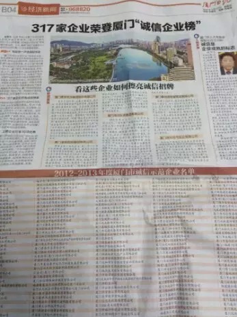 廈門市誠信示范企業(yè)每兩年評選一次,旨在表彰廈門企業(yè)在海西誠信建設中的突出表現(xiàn),鼓勵企業(yè)誠信經(jīng)營,加強企業(yè)信用管理,提升城市信用形象,全力打造“誠信廈門”。此次評選是由廈門海關、檢驗檢疫局、法院、總工會、人民銀行、廈門日報社和誠信促進會等29個單位共同組成評選委員會,綜合考察評選出來的。按照規(guī)定,上榜企業(yè)可以得到銀行、工商、稅務等多個部門30項優(yōu)惠待遇。