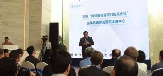 當(dāng)天下午,“自貿(mào)試驗區(qū)(廈門)圓桌會議”參會代表來到國貿(mào)金融中心(ITFC)形象展示廳。國貿(mào)控股公司副董事長、國貿(mào)股份公司總裁陳金銘,國貿(mào)控股公司副總經(jīng)理鄭家輝,歡迎參會代表的光臨,陳金銘副董事長用英語致歡迎詞,現(xiàn)場闡述了設(shè)立自貿(mào)區(qū)為海西經(jīng)濟、金融發(fā)展帶來的重大契機和建設(shè)國貿(mào)金融中心的戰(zhàn)略意義。來賓對國貿(mào)金融中心項目理念和市場定位表示贊許,期待國貿(mào)控股和國貿(mào)金融中心未來在自貿(mào)區(qū)發(fā)展和廈門金融、商務(wù)平臺建設(shè)中繼續(xù)發(fā)揮領(lǐng)軍作用。