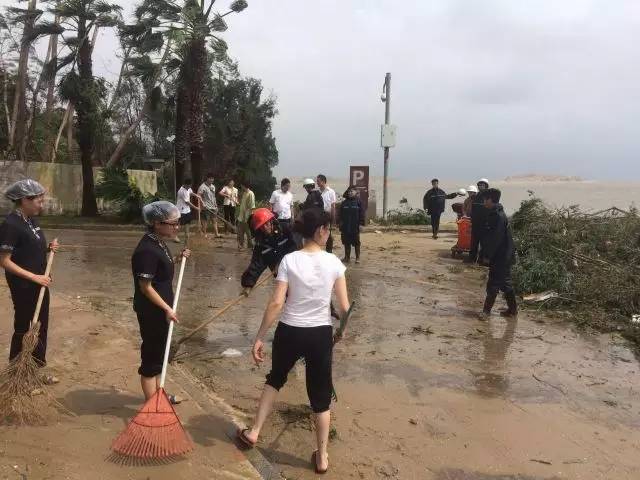 金門灣酒店位處臺(tái)風(fēng)登陸點(diǎn),當(dāng)晚全體管理人員留守酒店值班,處理滲水,加固門窗。臺(tái)風(fēng)登陸后,又忙于周邊環(huán)境的清理和受損發(fā)電機(jī)的維修。家住酒店附近此次臺(tái)風(fēng)登陸點(diǎn)歐厝村的員工連家都沒(méi)有回,幾天來(lái)一直奮戰(zhàn)在抗臺(tái)救災(zāi)的現(xiàn)場(chǎng)。