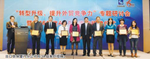 在中國信保近日舉辦的“轉型升級,提升外貿競爭力”專題研討會暨AAA級客戶授牌儀式上,廈門國貿被中國信保授予AAA級客戶。據悉,中國信保將對獲授AAA級客戶的企業(yè)從承保、理賠、增值服務等方面制定差異化政策,大力支持這些重點客戶使用個性化承保方案開拓海外市場。
