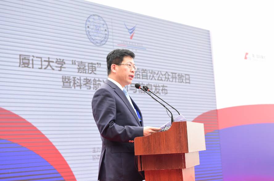 許曉曦董事長(zhǎng)在發(fā)言中充分肯定了國(guó)貿(mào)和廈大長(zhǎng)期以來的良好合作關(guān)系。作為全國(guó)985工程之一的重點(diǎn)院校,廈門大學(xué)為廈門國(guó)貿(mào)培養(yǎng)了眾多優(yōu)秀的人才,并成為公司的重要智庫(kù);作為中國(guó)上市企業(yè)百?gòu)?qiáng),廈門國(guó)貿(mào)也為廈大學(xué)子提供了施展才華的舞臺(tái),并成為廈大的實(shí)習(xí)基地之一。許董向與會(huì)嘉賓介紹了國(guó)貿(mào)海運(yùn)公司在船舶管理領(lǐng)域的一系列資質(zhì)及成績(jī),并承諾將全力做好“嘉庚”號(hào)的管理工作,確保科考任務(wù)順利完成。他衷心祝愿“嘉庚號(hào)”一帆風(fēng)順,祝愿廈大與國(guó)貿(mào)的合作更加緊密,祝愿廈大早日成為世界一流大學(xué)。