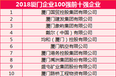 “2018廈門(mén)企業(yè)100強(qiáng)”