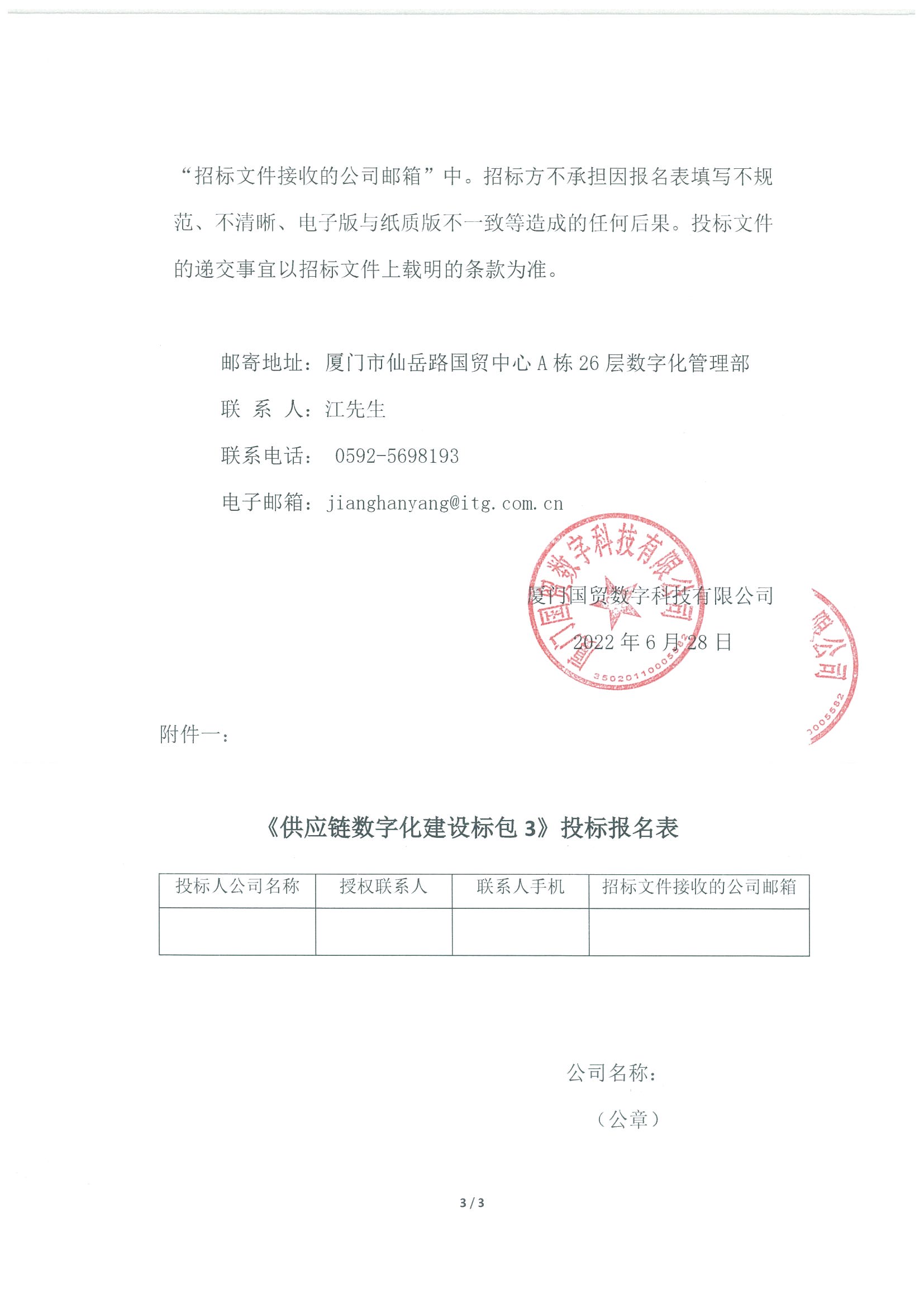 廈門(mén)國(guó)貿(mào)數(shù)字科技有限公司關(guān)于《供應(yīng)鏈數(shù)字化建設(shè)標(biāo)包3》的招標(biāo)公告