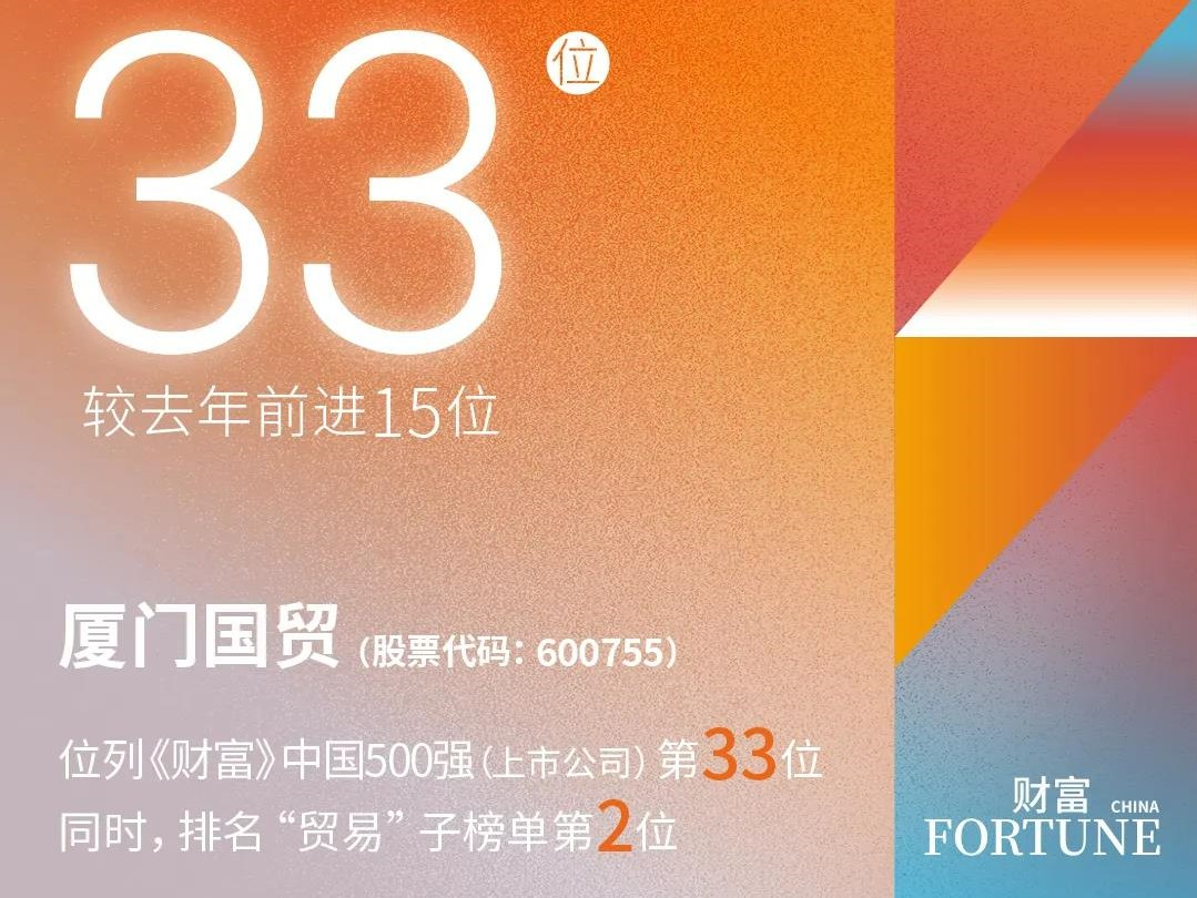 前進15位!廈門國貿(mào)位列《財富》中國500強(上市公司)第33位!